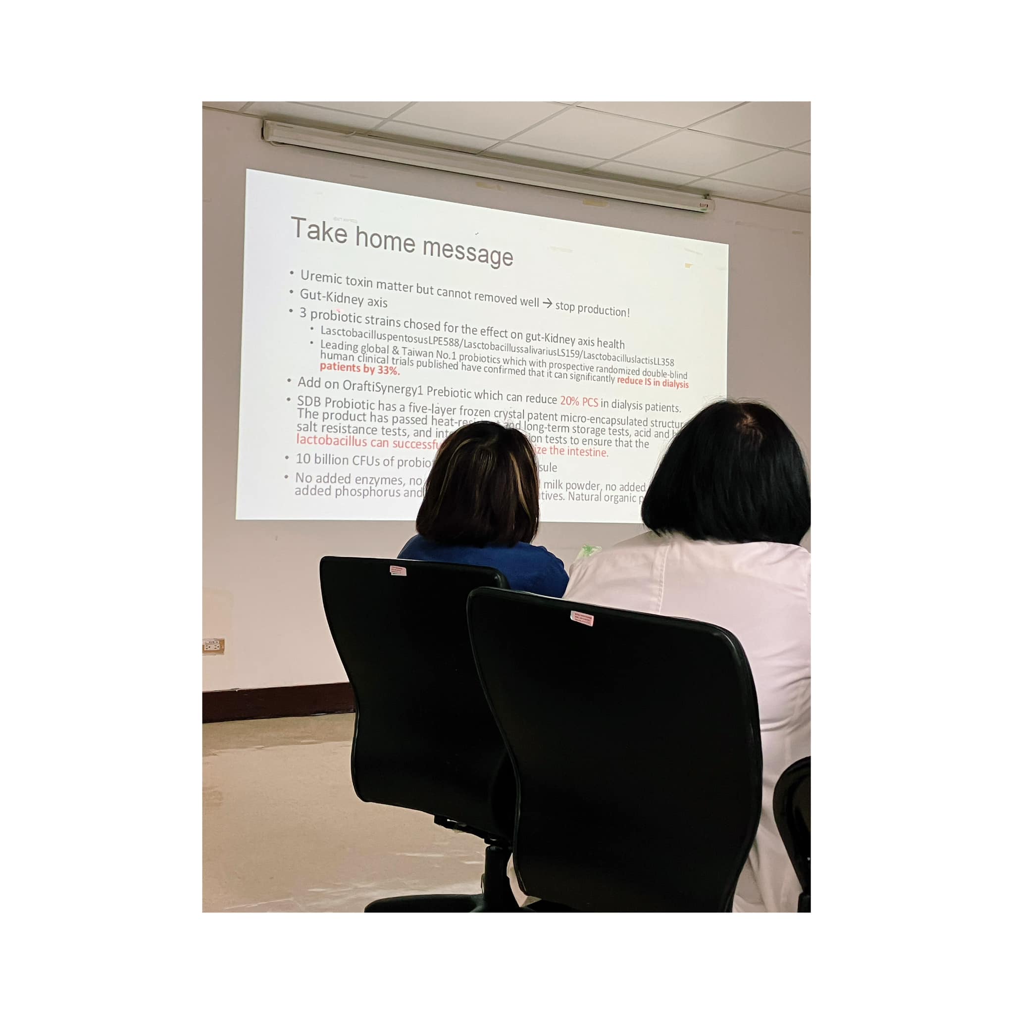 末期慢性腎臟病的患者,低磷低鉀,合併水腫的患者也會限水,病人蔬果全穀類等高纖有利益生菌生長的食物攝取會大大降低,導致腸胃不適便秘加劇、尿毒素的累積及腎功能惡化,目前越來越多的研究證實以尿毒素為標靶有利腎臟保護的腎性益生菌有助維持腸道菌叢平衡與腸道屏蔽的完整,是未來慢性腎臟病預防保健的的好選擇。