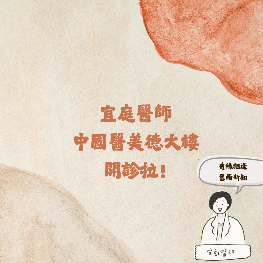 週三衛生局查驗通過,所以10月10日(五)早上是宜庭醫師在中國醫美德大樓的最後一診唷!