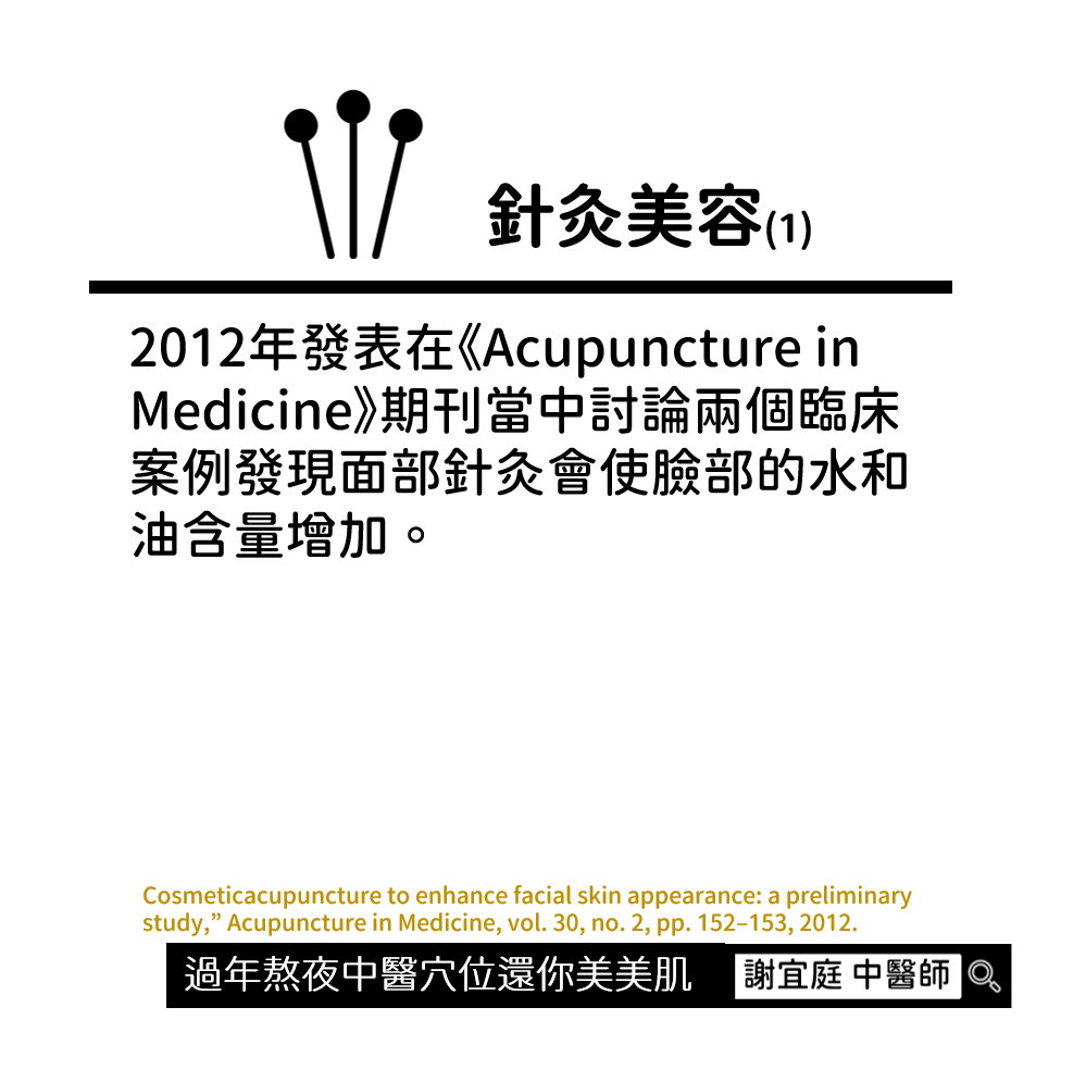 Cosmetic acupuncture to enhance facial skin appearance: a preliminary study,” Acupuncture in Medicine, vol. 30, no. 2, pp. 152–153, 2012.